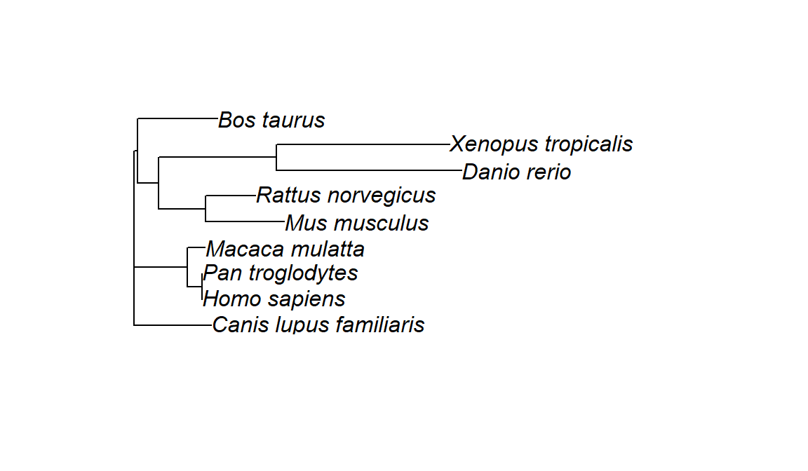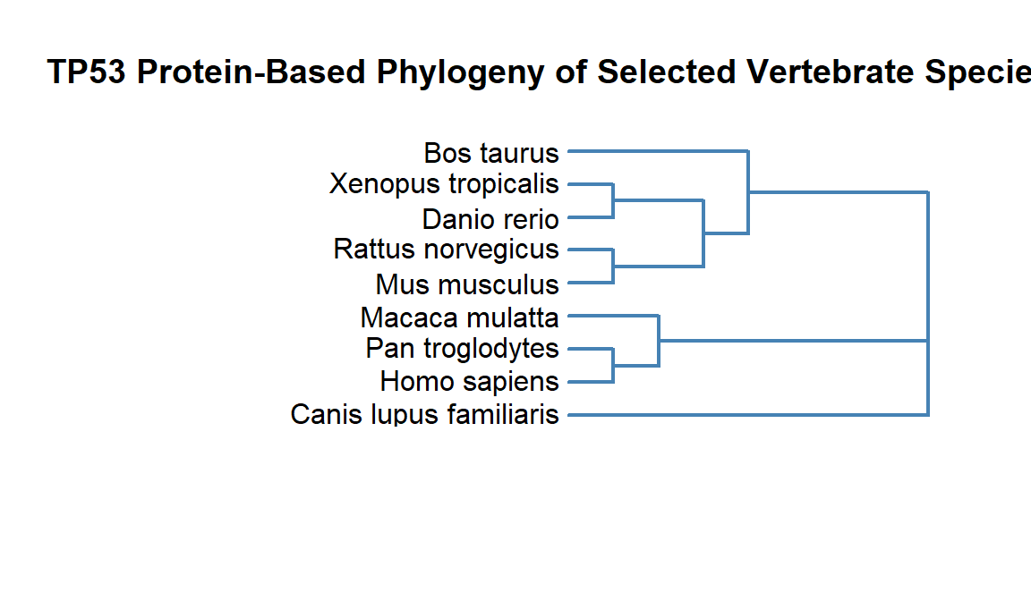 title(main = "TP53 Protein-Based Phylogeny of Selected Vertebrate Species")